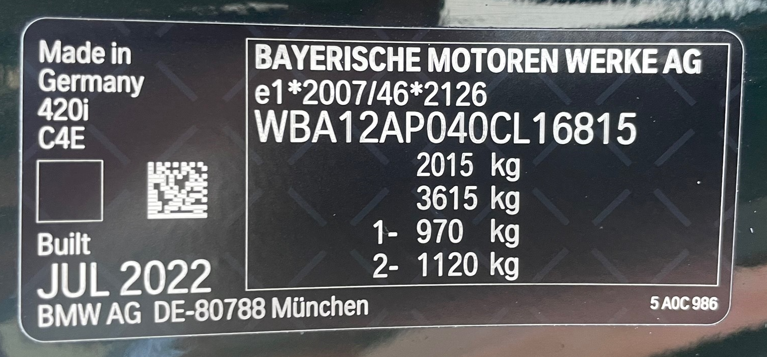 The paint code is usually either three numbers or numbers and letters such as paint code: 300 Alpine White, paint code: 354 Titanium Silver or as below C4E Sanremo Green.