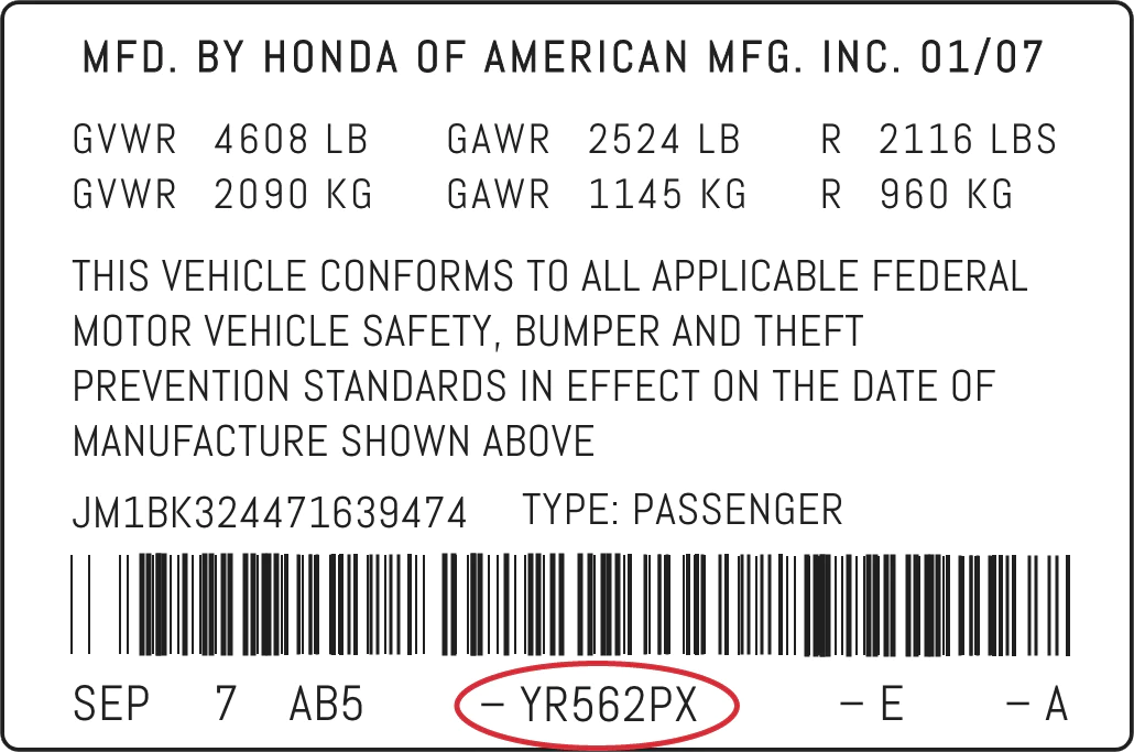 The location of your colour code may differ according to the specific Acura model you own. However, for most models, you can generally locate the colour code inside the door jamb.