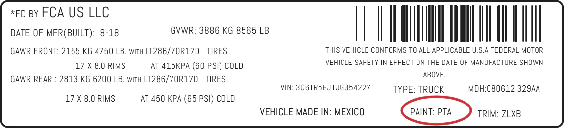 In most Chrysler models, the colour code can usually be located either inside the engine compartment or on the inside of the rear bumper.