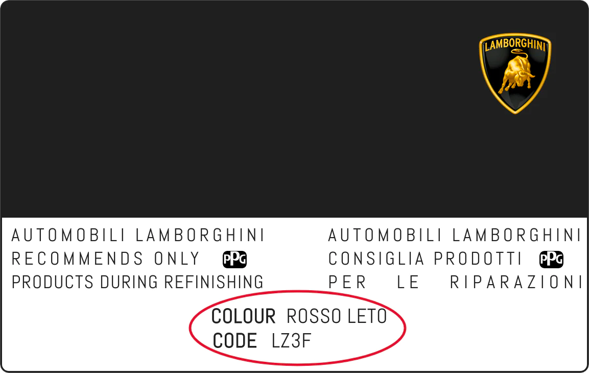Ensuring the perfect colour match involves identifying your Lamborghini's specific paint code. Each model and year could have its own unique code. Our specialised tool makes this easy—simply enter your Lamborghini’s registration information, and we'll pinpoint the precise shade for you.
