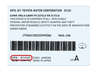 Finding your Lexus colour code paint might be confusing but as you can see in the image, you can locate it at the lower right corner of the label after the letters “C/TR”.