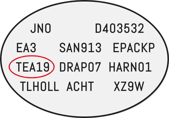Use the image above as a guidance to find your Renault paint colour code, which will be a three character code after the letters “TE”.