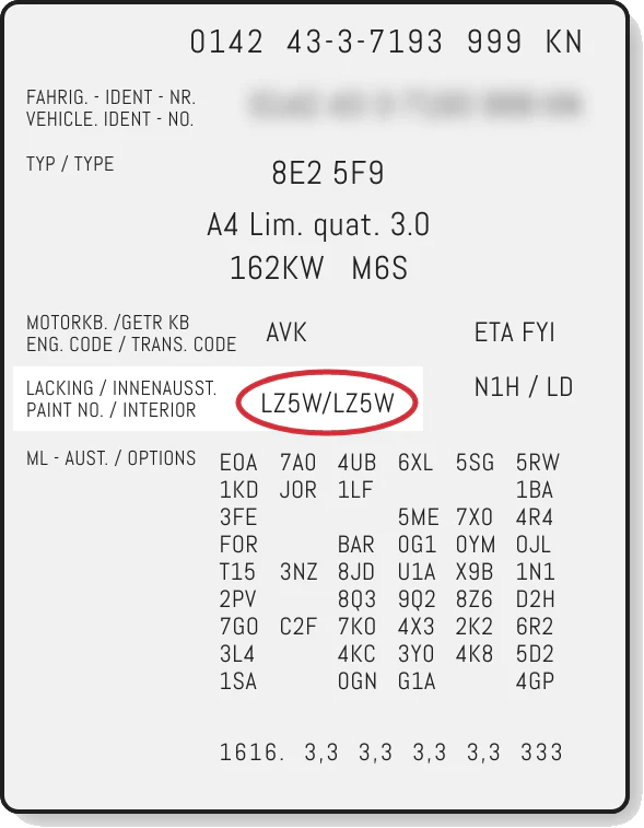 The position of the colour code on your Seat model can vary, but it is generally found in the boot of the vehicle.